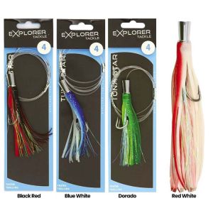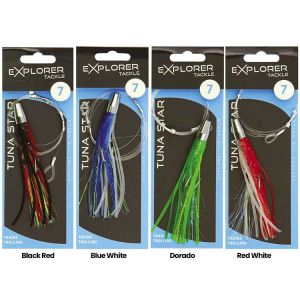 Cannes, moulinets et leurres conçus pour ferrer thons, marlins, espadons et autres prédateurs marins en pêche à la traîneCannes, moulinets et leurres conçus pour ferrer thons, marlins, espadons et autres prédateurs marins en pêche à la traîne